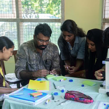 The field workshop held at State Forest Training Institute, tailored for amateurs, enthusiasts, researchers, and students, offered an immersive experience through diverse sessions and field visits. Esteemed experts covered different topics in myrmecology, ranging from Introduction to ants, collection methods, identification keys, research publications, macrophotography, to usage of stereomicroscope for examination. Fifteen delegates were trained intensively for three days on the various aspects of ant taxonomy including filed methods like leaflitter sifting, Winkler extraction, and Berlese funnel, and at the exit they were confident of identifying the ant genera in hand.